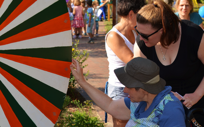17 Aussteller verwandelten den Flur der Tagesstätte in eine farbenfrohe „Einkaufsmeile“, und